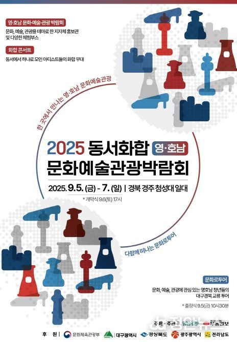 정안뉴스 안정주 기자 | 대구광역시는 경상북도, 광주시, 전라남도와 함께 오는 9월 5일부터 7일까지, 경주 첨성대 일원에서 ‘2025 동서화합 영호남 문화예술관광 박람회’를 개최한다.