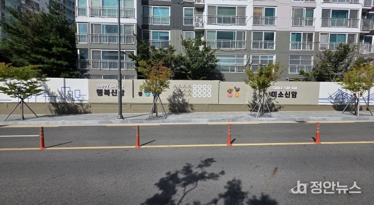 스텐실 기법으로 동구의 명소 3곳(봉무공원, 망우당공원, 동촌유원지)을 선적 요소로 표현하고, 신암동의 이름과 밝은 이미지를 모티브로 한 부착형 조형물을 설치해 한층 밝고 아름다운 거리로 탈바꿈했다.