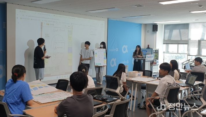 참가 학생들은 팀당 노트북 2대와 활동 교구를 활용해 ChatGPT, Canva 등 생성형 AI 도구를 실습하며 디지털 역량을 기른다.