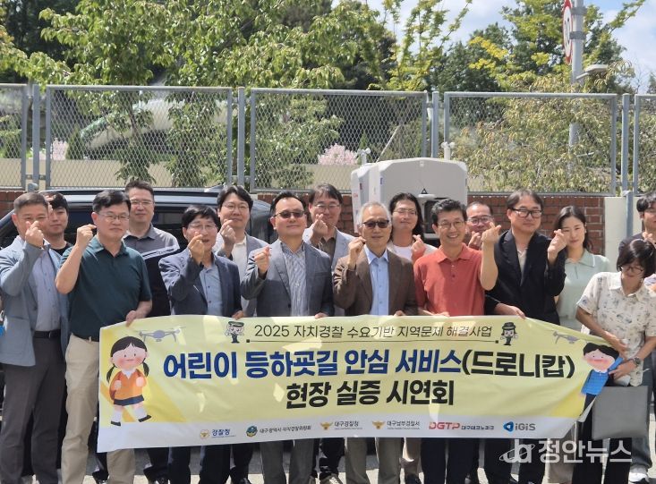 정안뉴스 안정주 기자 | 대구광역시 자치경찰위원회는 9월 5일 남구 대덕초등학교 일대에서 대구경찰청, 남부경찰서, 대구테크노파크, 지역 주민 및 관계 전문가 30명이 참석한 가운데 ‘어린이 등하굣길 안심 순찰 서비스 실증 시연회’를 열었다.