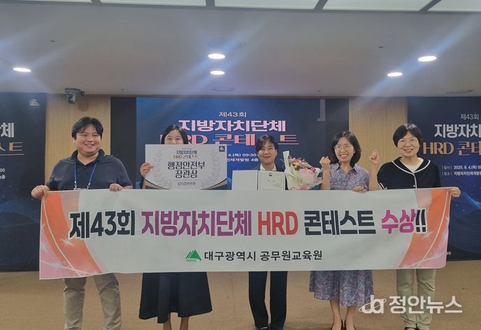 정안뉴스 안정주 기자 | 대구광역시 공무원교육원은 지난 9월 4일, 지방자치인재개발원에서 열린 ‘제43회 지방자치단체 HRD콘테스트’ 본선 강의경연 분야에서 전국 2위를 차지하며 행정안전부 장관상을 수상했다.