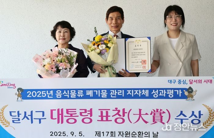 정안뉴스 안정주 기자 | 대구 달서구는 지난 5일 김제실내체육관에서 열린 제17회 자원순환의 날 기념식에서 환경부 주최 ‘2025년 음식물류 폐기물 관리 지자체 성과평가’ 전국 1위로 선정돼 대통령 표창을 받았다.