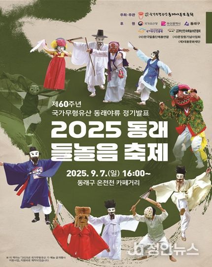 정안뉴스 황정혜 기자 | 부산시는 오늘(7일) 오후 4시 온천천 카페거리 공연장에서 제60주년 동래야류 정기공연 '동래 들놀음 축제'를 개최한다고 밝혔다.