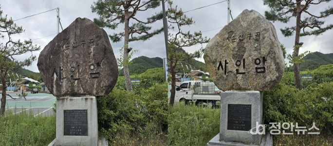 마을 표지석은 각 마을의 명칭과 정체성을 알리는 상징물이지만, 일부는 이끼와 얼룩으로 제 기능을 다하지 못하는 상황이었다.