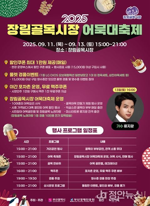 정안뉴스 황정혜 기자 | 부산시는 오는 11일부터 13일까지 3일간 오후 3시부터 오후 9시까지 사하구 장림 골목시장에서 '장림골목시장 어묵대축제'를 개최한다고 밝혔다.