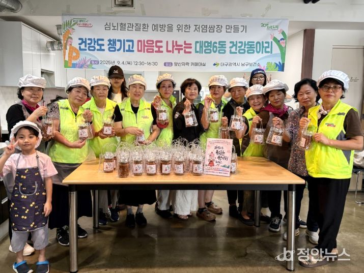 정안뉴스 안정주 기자 | 대구 남구는 대명6동 건강 리더와 함께 취약계층을 위한 명절맞이 저염 쌈장 나눔 활동을 진행했다고 밝혔다.