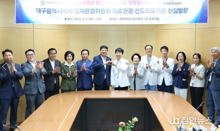정안뉴스 안정주 기자 | 대구시의회 경제환경위원회(위원장 김재용)는 제319회 임시회 기간 중인 9월 9일(화), 지역 의료관광 산업 활성화 방안 모색을 위해 지역의 선도의료기관 2곳을 방문했다.