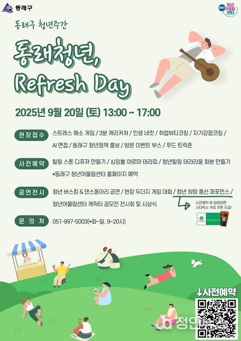 ‘동래청년 리프레쉬 데이’의 자세한 일정과 참여 방법은 동래구 청년어울림센터 누리집과 인스타그램을 통해 확인할 수 있다.