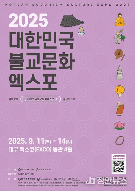 정안뉴스 안정주 기자 | 대한민국 전통불교문화를 한 자리에서 만날 수 있는 ‘2025대한민국불교문화엑스포(Korean Buddhism Culture Expo)’가 오는 9월 11일부터 14일까지 나흘간, 대구 엑스코(동관 4홀)에서 개최된다.