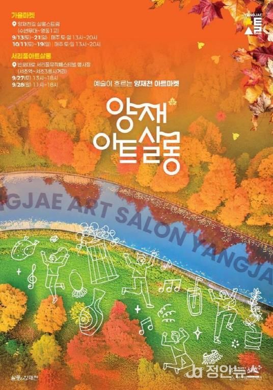 서울 서초구는 오는 13일부터 10월 19일까지 양재천 수변무대부터 영동1교에 이르는 구간인 ‘양재천길 살롱스트림’에서 ‘양재아트살롱 가을마켓’을 운영한다고 밝혔다.