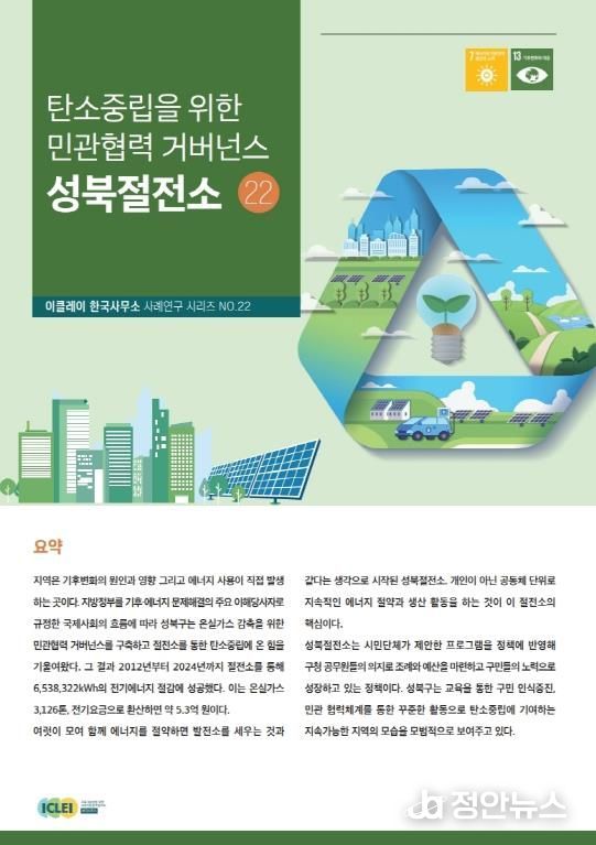 정안뉴스 안정주 기자 | 서울 성북구의 ‘탄소중립 민관협력 거버넌스 성북절전소’가 지난 9월 이클레이(ICLEI, 자치단체국제환경협의회) 우수사례로 선정되어 국내외 지방정부에 공유·확산됐다.