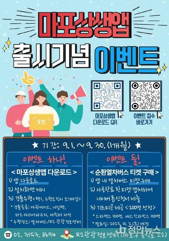 정안뉴스 안정주 기자 | 마포구는 지역 상권과 관광자원을 하나로 연결한 새로운 플랫폼 ‘마포상생앱’ 출시를 기념해 9월 한 달간 특별 이벤트를 진행한다.