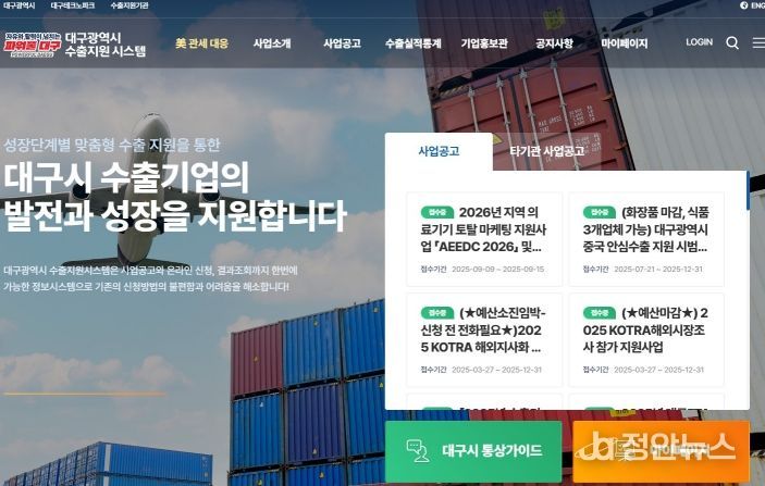 대구시는 2014년부터 ‘대구수출지원시스템’을 구축·운영하며, 지역 기업들이 해외 마케팅 지원사업 신청과 수출 통계 조회를 편리하게 이용할 수 있도록 지원해 왔다.