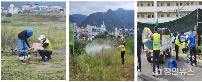 9월 12일에는 대명10동 1647-1번지와 대명3동 1745-9번지에 대해 1개 반 2명으로 편성된 방역기동반이 정비구역 내외 쓰레기 투척지, 물웅덩이 등에 집중적으로 차량용 방역을 실시하고, 사람이 접근하기 힘든 8천 평 규모의 광범위한 정비구역은 드론을 활용하여특별 방역 활동으로 실시했다.