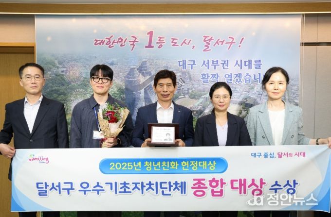 정안뉴스 안정주 기자 | 대구 달서구는 지난 13일 국회의사당 의원회관에서 열린 ‘제9회 청년의 날 기념식’에서 2025년 청년친화 헌정대상 ‘종합대상’을 수상했다고 16일 밝혔다.