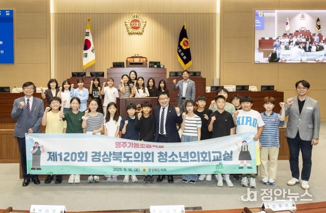 정안뉴스 안정주 기자 | 경상북도의회는 9월 16일 본회의장에서 영주 가흥초등학교 학생 22명이 참여한 가운데 '제120회 경상북도의회 청소년의회교실'을 개최했다.
