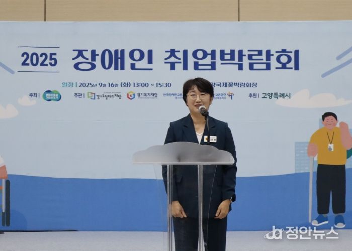 정안뉴스 안정주 기자 | 경기도의회 경제노동위원회 고은정 위원장(더불어민주당, 고양10)은 16일 고양국제꽃박람회장에서 열린 ‘2025 경기도 장애인 취업박람회’ 공동 개막식에 참석해 장애인 일자리 확대의 중요성과 경기 남북부의 균형 있는 접근 필요성을 강조했다.