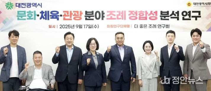 정안뉴스 안정주 기자 | 대전시의회 의원연구단체 더 좋은 조례 연구회(회장 김영삼 의원)는 17일 시의회 공감실에서 '대전광역시 문화·체육·관광 분야 조례 정합성 분석 연구' 착수보고회를 개최했다.