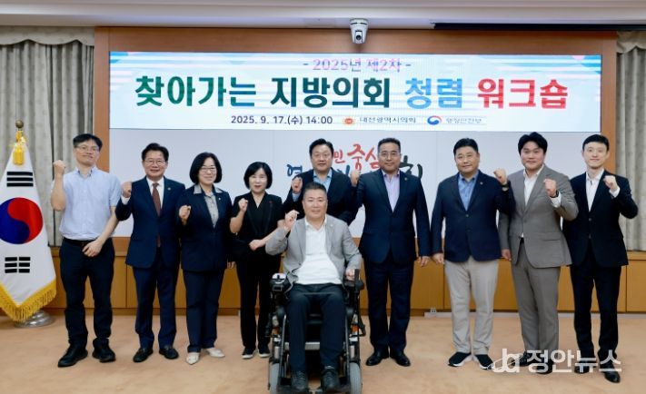 정안뉴스 안정주 기자 | 대전시의회는 17일 시의회 3층 소통실에서 행정안전부 주관 '2025년 제2차 찾아가는 지방의회 청렴 워크숍'을 열고, 청렴 실천과 공정선거 의지를 다졌다.