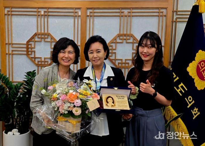 정안뉴스 안정주 기자 | 경기도의회 정윤경 부의장(더불어민주당, 군포1)은 9월 16일 도의회 부의장실에서 열린 경기도 학교사회복지사업 발전 방향 간담회에서 군포·의왕 학교사회복지사들로부터 감사패를 전달받았다.