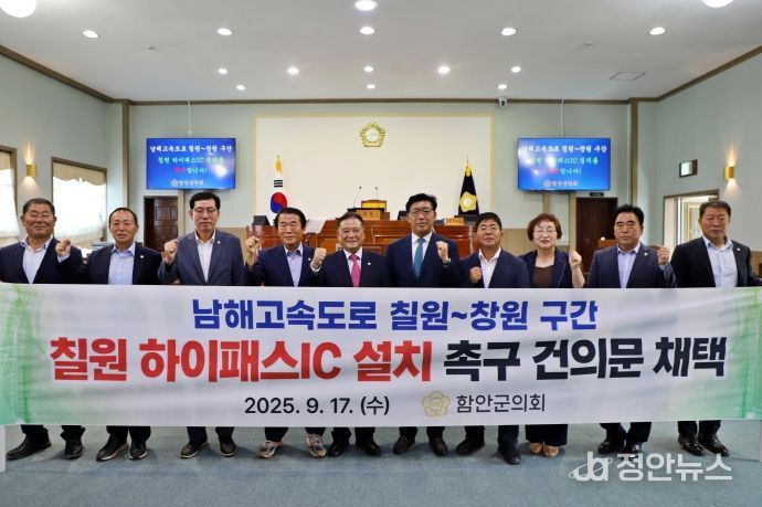 정안뉴스 안정주 기자 | 함안군의회는 17일 제314회 임시회 제2차 본회의에서 '남해고속도로 칠원~창원 구간 칠원 하이패스IC 설치 촉구 건의문'(대표발의 김영동 의원)을 만장일치로 채택했다.