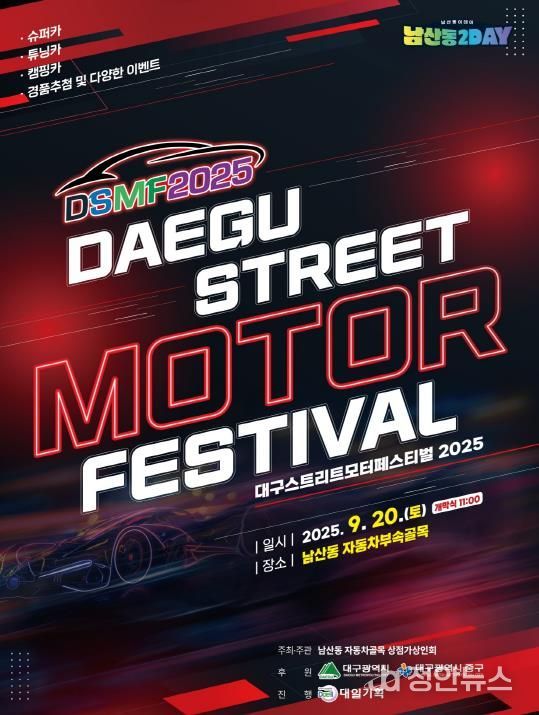 정안뉴스 안정주 기자 | 대구의 대표 자동차 골목 축제 ‘2025 대구스트리트모터페스티벌’이 올해로 14회를 맞아 오는 9월 20일, 중구 남산동 자동차 부속골목에서 개최된다.