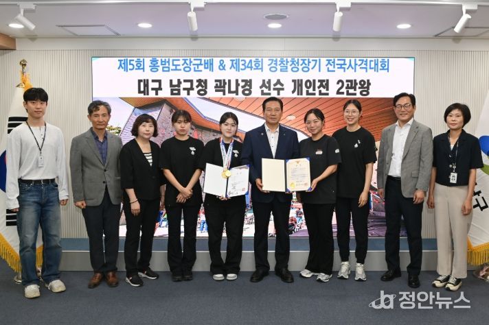대구 남구 사격선수단 소속 곽나경 선수가 지난 9월 3일부터 13일까지 열린 제5회 홍범도장군배와 제34회 경찰청장기 전국사격대회 여자 25m 화약권총 개인전에서 모두 1위를 차지하여 2관왕을 달성했다.