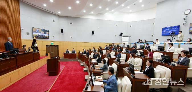 이날 본회의에서는 ▲최미자 의원의 학생의 개성 존중을 위한 교복 정책 전환 촉구 건의안 ▲오세길 의원의 장애인 등 보행약자의 접근성 편의를 위한 제도 개선 및 재정 지원 건의안 ▲정현서·전명자 의원의 생명 존중을 위한 정신건강 및 자살예방 정책 건의안 ▲강정수 의원의 보행자의 통행권 보장을 위한 보도 환경 개선 촉구 건의안 ▲설재영 의원의 공공형 영유아 실내 놀이터 확대 설치 촉구 건의안을 채택했다.