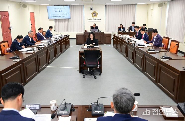 정안뉴스 안정주 기자 | 경상남도의회에서는 18일, 경남·부산 행정통합 특별위원회 제3차 회의를 열고, 행정통합과 관련한 도청 업무보고를 청취하고 향후 활동 방향을 논의했다.