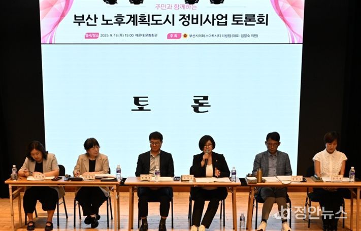 정안뉴스 안정주 기자 | 부산광역시의회 의원연구단체‘스마트시티 리빙랩’이 주최하는『주민과 함께하는 노후계획도시 정비사업 토론회』가 18일, 해운대문화회관 고운홀에서 개최됐다.