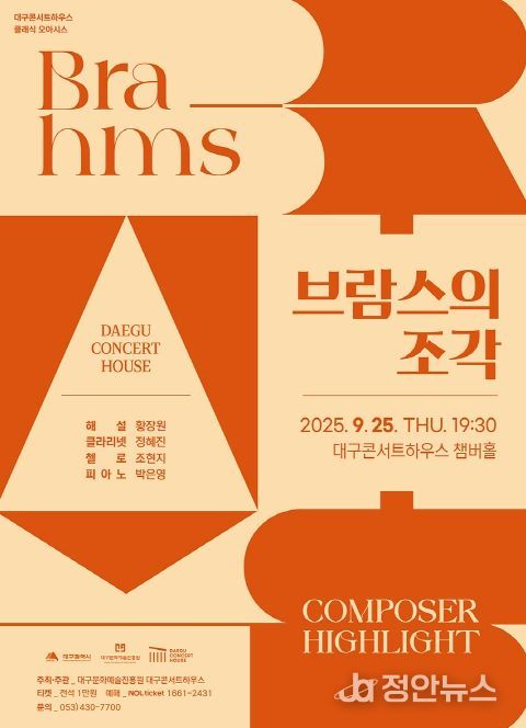 정안뉴스 안정주 기자 | 대구문화예술진흥원 대구콘서트하우스는 오는 9월 25일 오후 7시 30분, 대구콘서트하우스 챔버홀에서 클래식 작곡가의 삶과 작품을 집중 조명하는 렉처 콘서트 ‘컴포저 하이라이트’ 시리즈를 개최한다.