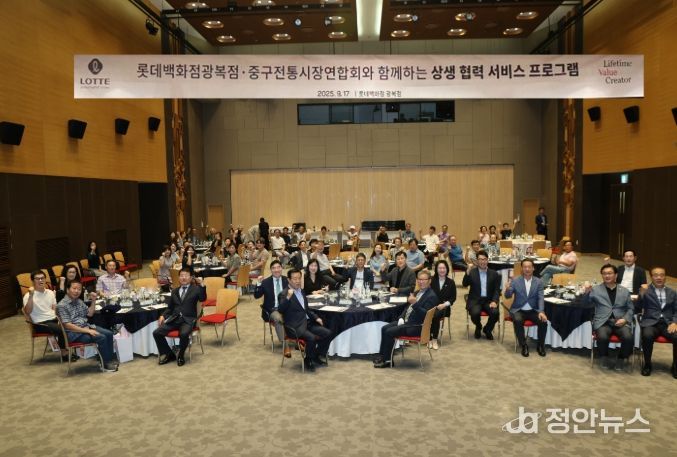 정안뉴스 황정혜 기자 | 부산 중구는 지난 17일 롯데백화점 광복점 문화홀에서 롯데백화점 임직원, (사)중구전통시장연합회장 등 전통시장 회장단, 구 의장과 구의원 등 60여 명이 참석한 가운데, 롯데백화점 광복점과 (사)중구전통시장연합회가 함께하는 상생협력 서비스 프로그램에 참여했다.