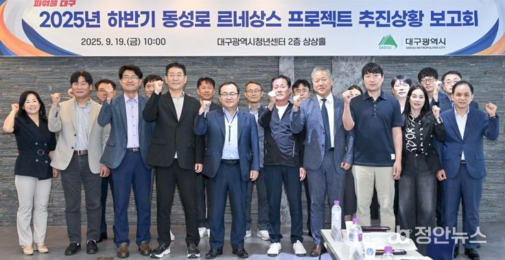 정안뉴스 안정주 기자 | 대구광역시는 지난 9월 19일 오전 10시, 대구시청년센터 2층 상상홀에서 홍성주 대구시 경제부시장 주재로 ‘2025년 하반기 동성로 르네상스 프로젝트 추진상황 보고회’를 개최했다.
