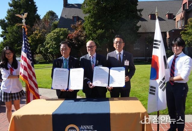 정안뉴스 안정주 기자 | 평택시의회는 22일, 미국 애니 라이트 스쿨에서 열린 협약식에 참석해 양해각서(MOU)를 체결하며, 평택국제학교 설립을 공식화했다.