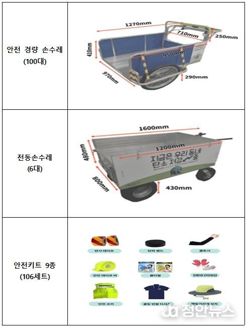 물품은 시 16개 구·군의 신청을 받아 ▲경량손수레와 안전키트는 폐지수거어르신에게, ▲전동손수레는 우리동네 사회가치경영(ESG) 센터 등으로 순차적으로 전달될 예정이다.
