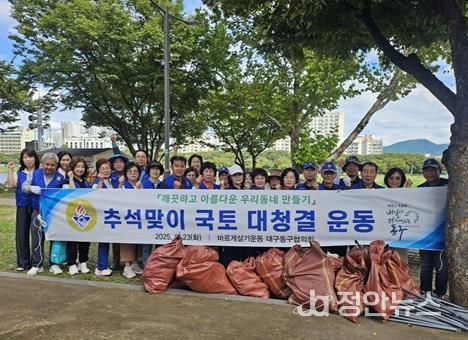 정안뉴스 안정주 기자 | 바르게살기운동 대구동구협의회는 지난 23일, 동촌유원지 일대에서 추석 맞이 국토대청결운동을 실시했다.