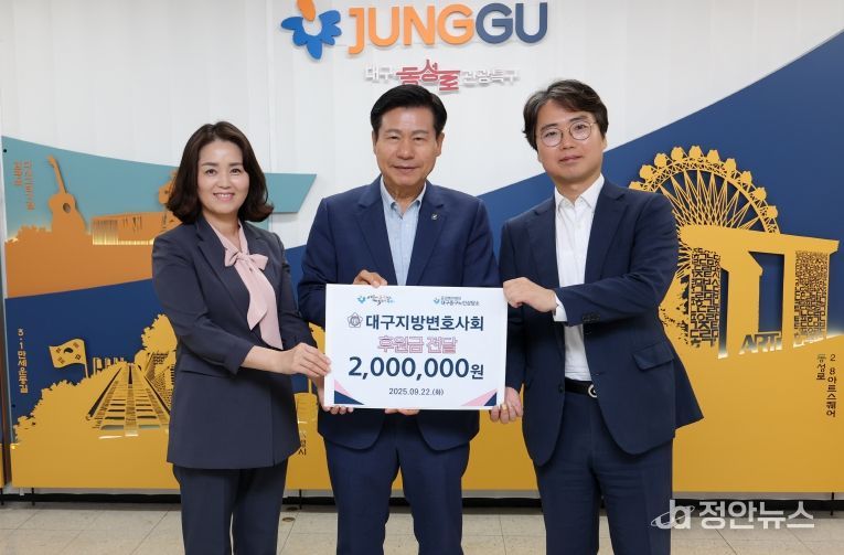 정안뉴스 안정주 기자 | 대구 중구는 지난 23일 중구청에서 대구지방변호사회(회장 이병희)로부터 200만 원 상당의 후원금을 전달받았다고 밝혔다.