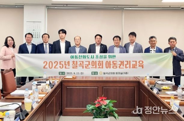 정안뉴스 안정주 기자 | 칠곡군의회는 23일 회의실에서 아동친화도시 조성을 위한 아동권리교육을 실시했다. 이번 교육은 유엔아동권리협약의 가치와 이념 실현을 위해 유니세프에서 인증하는 아동친화도시 칠곡군 조성을 위한 것이다.