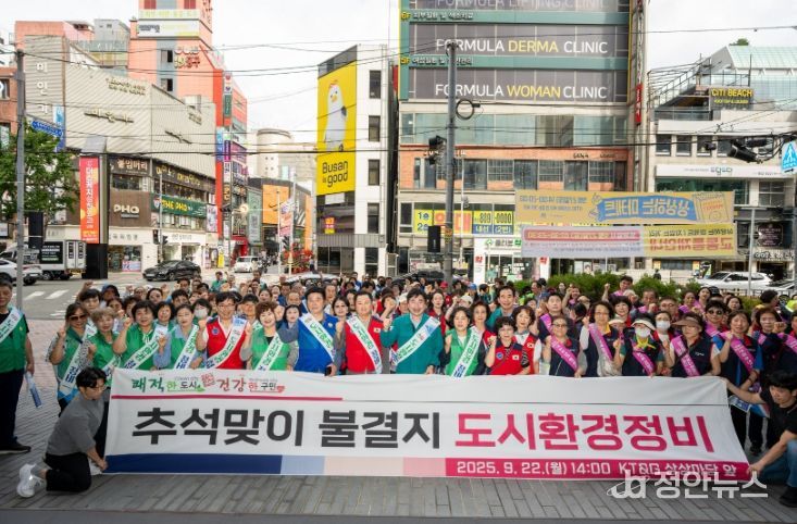 정안뉴스 황정혜 기자 | 부산진구는 지난 22일 서면1번가 일원에서 공무원, 새마을회·바르게살기협의회·한국자유총연맹 유관단체와 주민 등 약 150명이 참여한 가운데 추석맞이 도시환경정비 행사를 가졌다고 밝혔다.