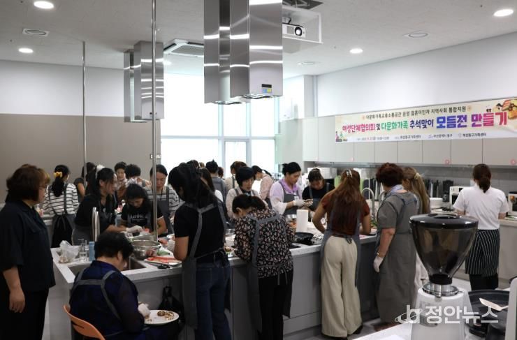 정안뉴스 황정혜 기자 | 부산 동구는 지난 23일 부산동구가족센터에서 ‘여성단체협의회 및 다문화가족 추석맞이 명절음식 만들기 행사’를 개최했다.