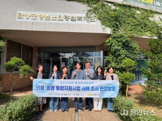 정안뉴스 안정주 기자 | 나주시의회 행정복지위원회는 9월 23일부터 24일까지 이틀간 담양군과 광주광역시 광산구를 방문해 의료·돌봄 통합지원 시범사업 운영 현장을 견학했다고 25일 밝혔다.