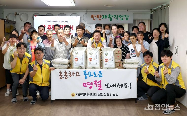 정안뉴스 안정주 기자 | 대전시의회 송인석 산업건설위원장(국민의힘, 동구1)은 추석 명절을 앞둔 25일 동구 소재 장애인 재활시설 탄탄재활작업장(원장 이미정)을 방문해 위문품을 전달했다.