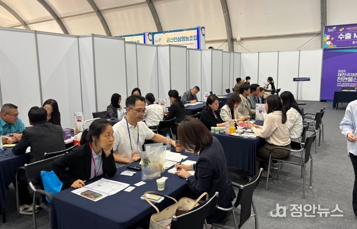 정안뉴스 황은경 기자 | 2025제천국제한방천연물산업엑스포 산업관 입주기업들이 해외 바이어와의 수출상담을 통해 수출협약 23건, 총 255억 원 규모의 수출협약을 체결했다.
