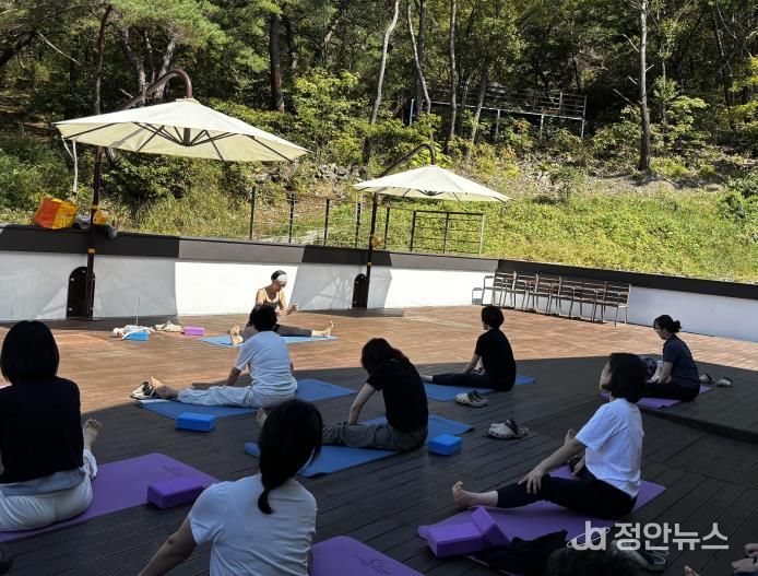 정안뉴스 황은경 기자 | 충북 단양군 단성면 소선암 치유의 숲에서 지난 27일 진행된 숲속 요가 프로그램이 성황리에 마무리됐다.