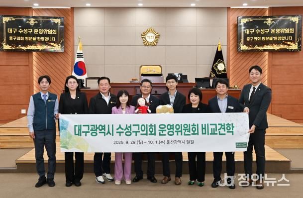 정안뉴스 안정주 기자 | 대구 수성구의회 운영위원회 소속 의원들이 울산 중구의회를 찾아 교류행사를 가졌다.
