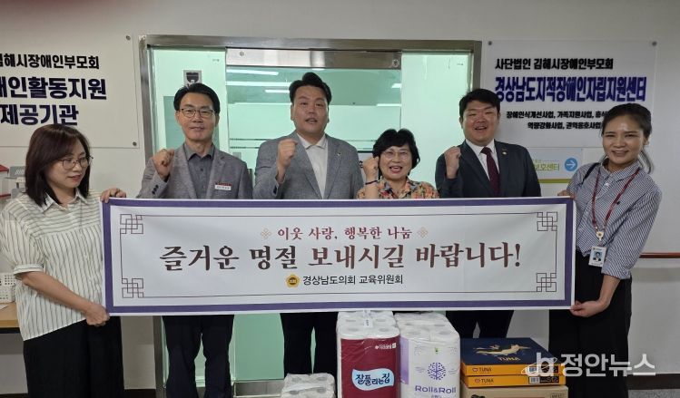 정안뉴스 안정주 기자 | 경남도의회 교육위원회는 9월 29일 월요일, 민족의 대명절 추석을 맞아 김해시에 위치한 (사)한국장애인부모회 김해지부를 방문했다.