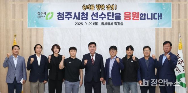 정안뉴스 황은경 기자 | 이범석 청주시장은 29일 임시청사 직지실에서 제106회 전국체육대회 출전을 앞두고 있는 직장운동경기부 선수단 감독들을 만나 격려했다.