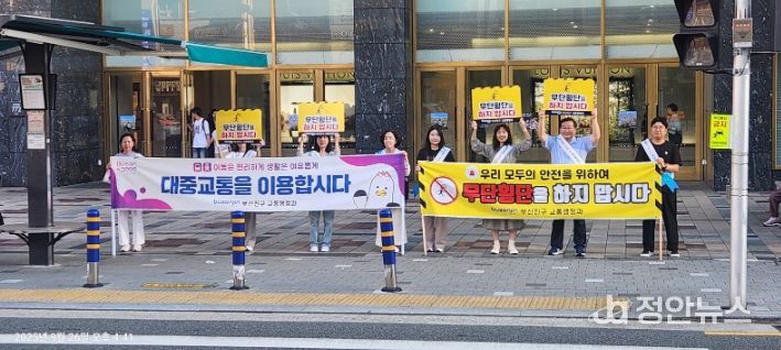 정안뉴스 황정혜 기자 | 부산진구는 추석을 맞아 24일, 25일 이틀에 걸쳐 보행자 통행량이 많은 부전시장과 서면롯데백화점 앞에서 ‘무단횡단 금지, 교통안전 캠페인’을 실시했다.