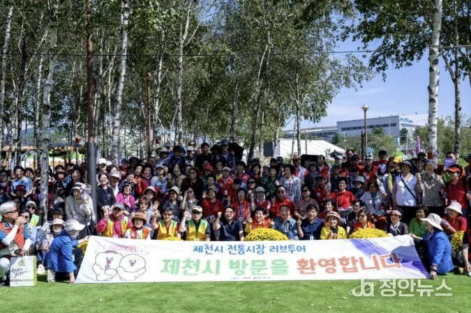 제천시 전통시장 러브투어는 타 지역 관광객을 대상으로 하는 대표적인 관광 지원사업이다. 지원 조건은 △30명 이상 관광객 단체 △지역 식당 이용 △제천 주요 관광지 방문 △전통시장 1시간 30분 이상 체류이며, 조건 충족 시 관광버스를 무상 지원하거나 임차 보전료(35만 원)를 지급한다.