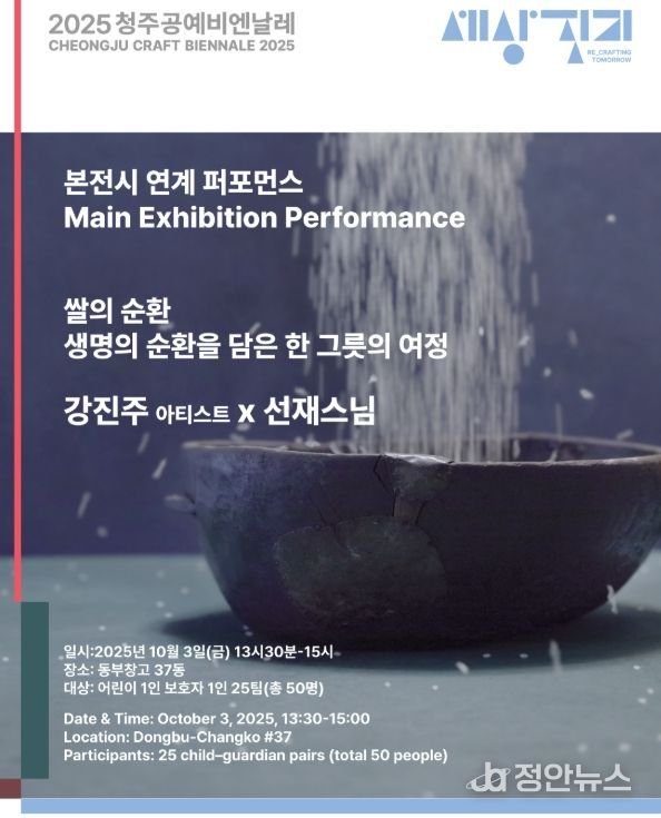 2025 청주공예비엔날레 본전시와 연계한 이번 프로젝트는 쌀을 매개로 생명의 순환과 공동체에 대한 천착을 담아온 작가 강진주와 사찰 음식이 곧 수행이었던 선재 스님이 만나 ‘쌀의 순환 – 생명의 순환을 담은 한 그릇의 여정’을 풀어내는 퍼포먼스다.